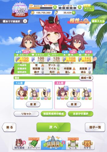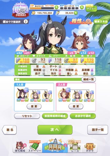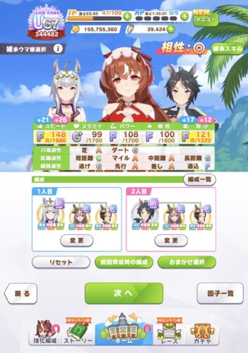 ガチ勢の方々は気にせず周回するんでしょうが、私はそこそこ勝てればいい派なので次回からはダートは無くして距離全振りで育成します。